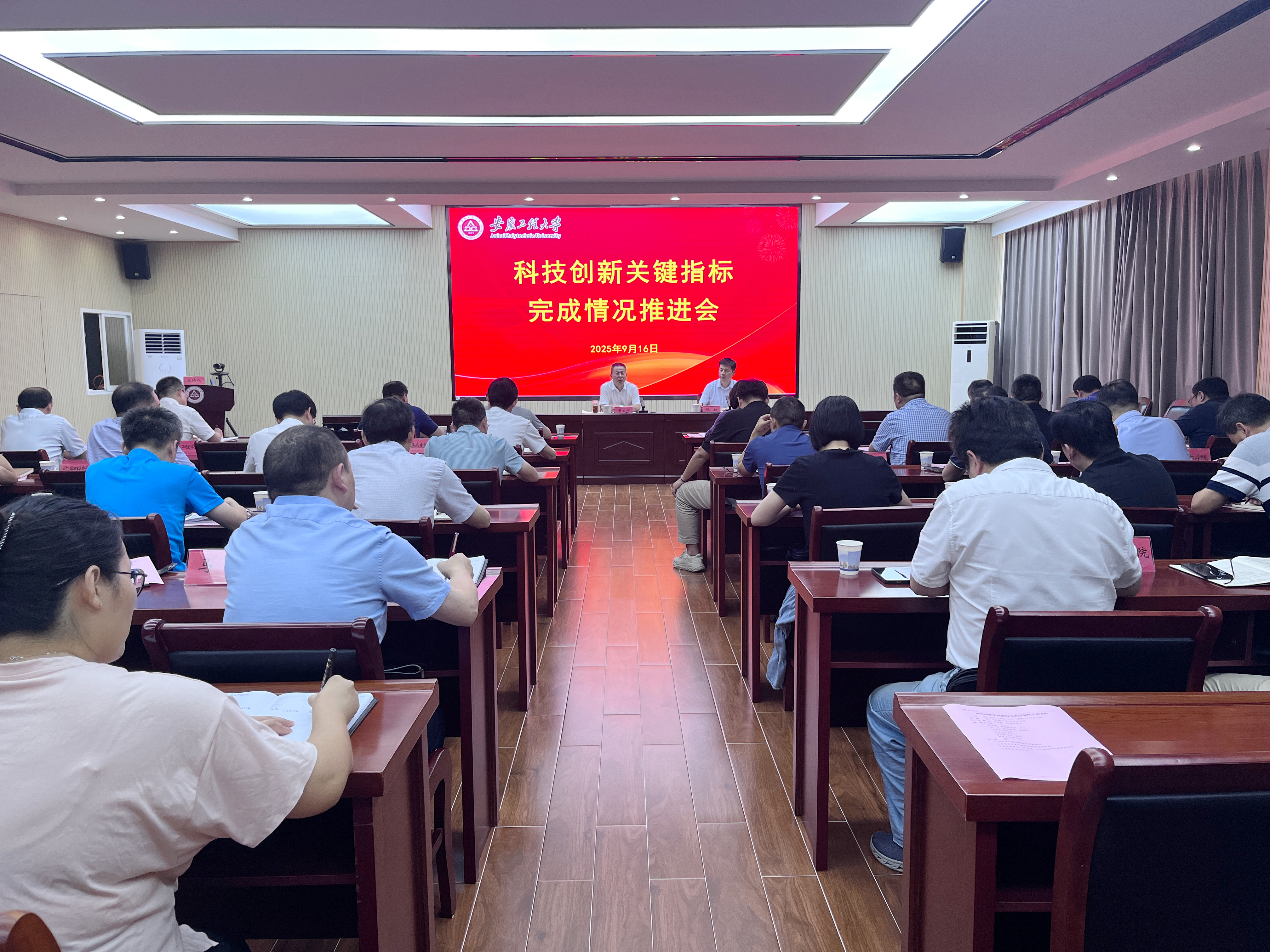 科技处汇报了科技创新重点工作的进展情况,材料科学与工程学院王刚院长和人工智能学院江本赤院长在会上作了科技创新工作经验和成效的分享。