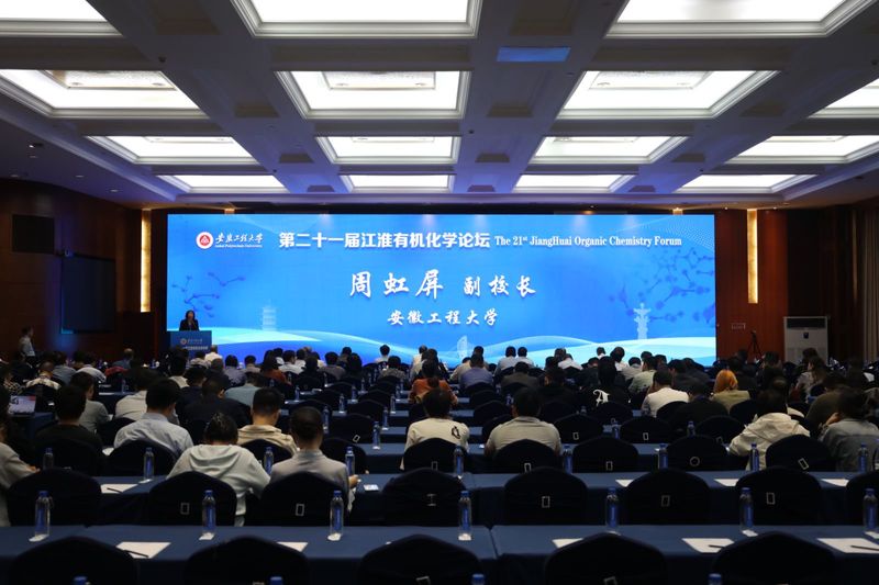 2025年10月17日至19日,由江淮有机化学论坛组委会主办,安徽工程大学化学与环境工程学院承办的第二十一届江淮有机化学论坛在芜湖召开。安徽工程大学副校长周虹屏教授出席开幕式并致辞,江淮有机化学论坛发起人中国科学技术大学郭庆祥教授到会指导。来自中国科学技术大学、南京大学、浙江大学、复旦大学、中国人民大学等60所高校及科研院所的近300位学术界代表和30余位企业界代表出席了本次会议。