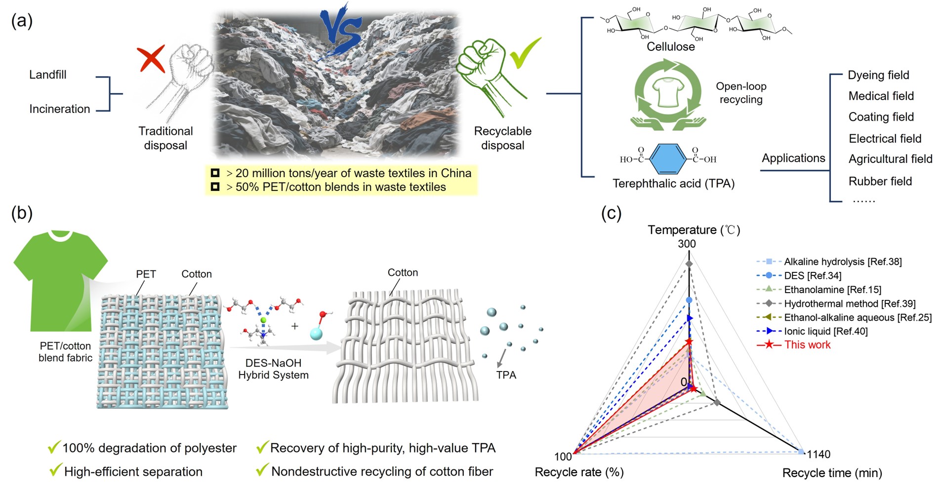 图1 废旧涤棉回收新范式:DES-NaOH协同体系的创新与优势