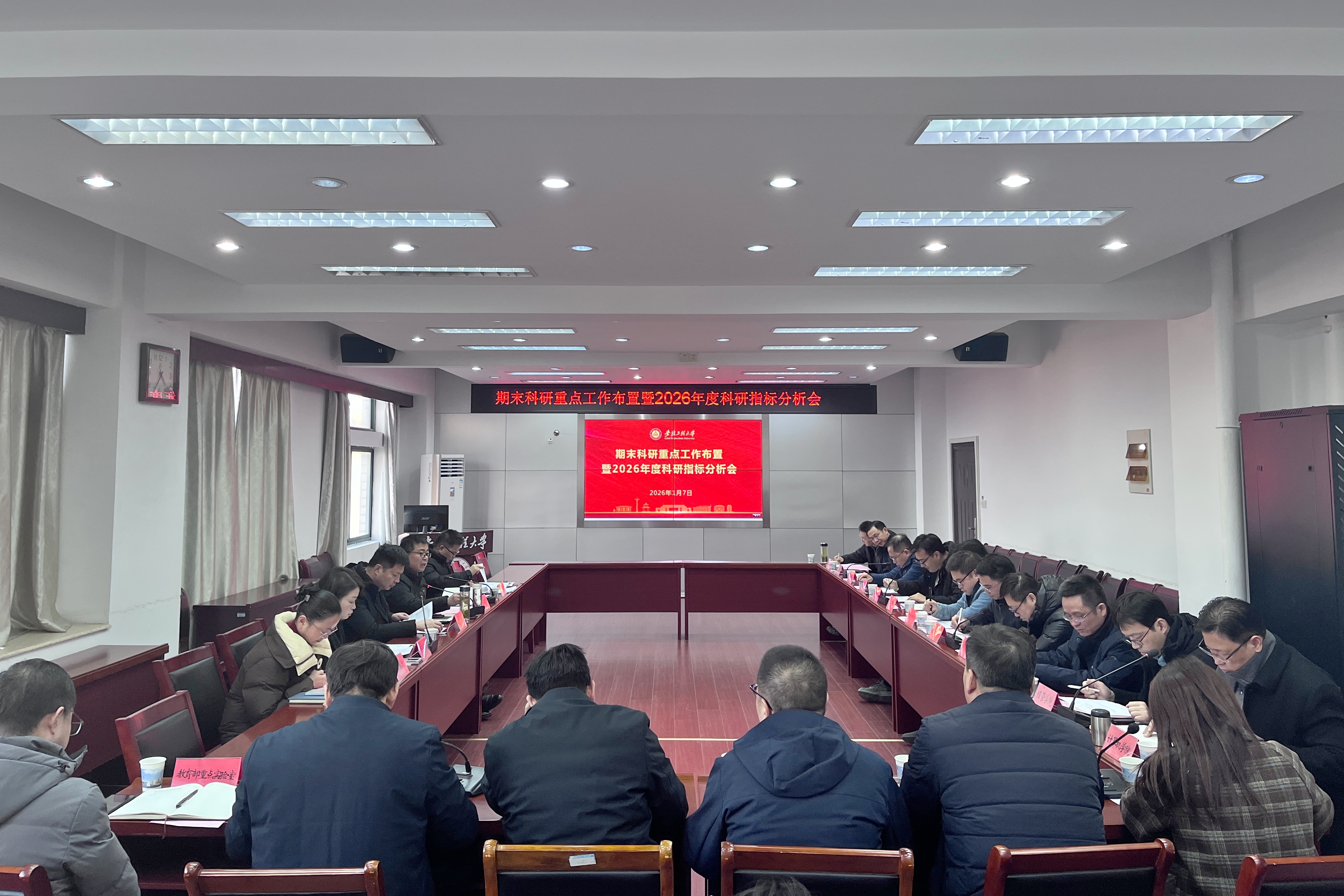 1月7日下午,学校在A座1121会议室召开期末科研重点工作布置暨2026年度科研指标分析会。校党委常委、副校长凤权出席会议,科技处、人事处以及各学院负责人,科技处分管领导以及工作人员参会了会议。会议由科技处处长王宗乾主持。