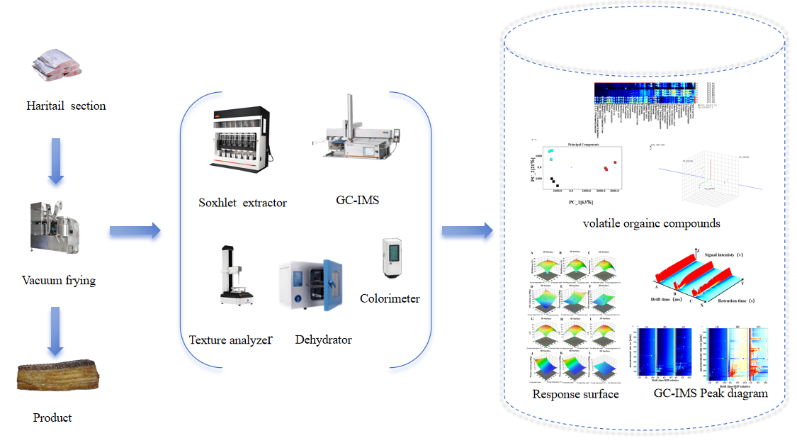 带鱼是一种在商业上广受欢迎的海鱼,深受消费者喜爱。在加工过程中,油炸方法虽然能够赋予其特殊口感,但也会导致产品油脂含量偏高,进而对身体健康产生不利影响。针对这一问题,本研究创新性地提出了采用真空油炸技术开发低脂带鱼产品的方法。通过多因素协同研究,成功研制出具有全新工艺的低脂真空油炸带鱼产品,并鉴定出影响风味的关键挥发性化合物及特定氨基酸。研究进一步验证了真空油炸技术在提升感官品质方面的优势,同时揭示了各工艺参数交互作用对产品特性产生的协同效应。该成果不仅为真空油炸技术在其他水产品加工中的适用性提供了理论参考,也为未来健康油炸海产品的规模化生产奠定了基础。